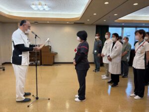 さて、今年も1月5日に恒例の「仕事始め式」が開催されました。そこでは、昨年の実績の表彰式もありました。看護部では、病院集談会での、病院集談会運営部会長特別賞(皮膚・排泄ケア特定認定看護師)、6S成果発表会で院長賞(3B病棟)医療安全室長賞(地域包括ケア病棟)6S推進委員長賞(3A病棟)、ICT委員会から、手指衛生の重要性を伝える工夫を行ったことを評価され感染対策功労賞(看護部感染対策委員会)の5つの賞を頂きました。賞を頂くというのは嬉しい限りです。